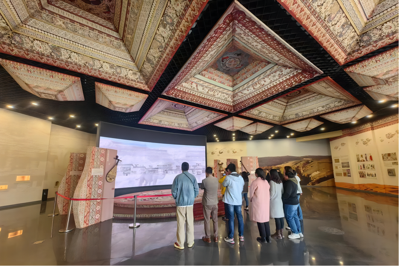 2023年10月23日,我公司組織員工在敦煌研究院蘭州分院敦煌藝術(shù)館內(nèi)參觀“覺色敦煌 莫高精神”敦煌石窟藝術(shù)展。走進敦煌藝術(shù)館,無論是抬頭可見的藻井天花板,抑或是墻角邊印著莫高窟窟區(qū)的全景照片,每一處細節(jié)都被濃厚的敦煌元素所覆蓋。在這里我們可以不受外界打擾,在感興趣的壁畫前安靜地、耐心地去觀賞每一處細節(jié)。